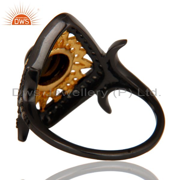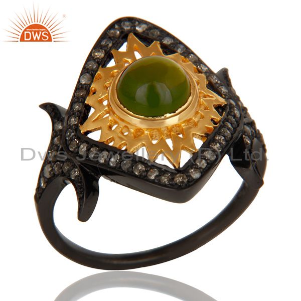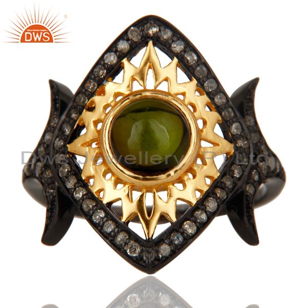 Diamond And Green Tourmaline Set Black, Gold On Silver Ring