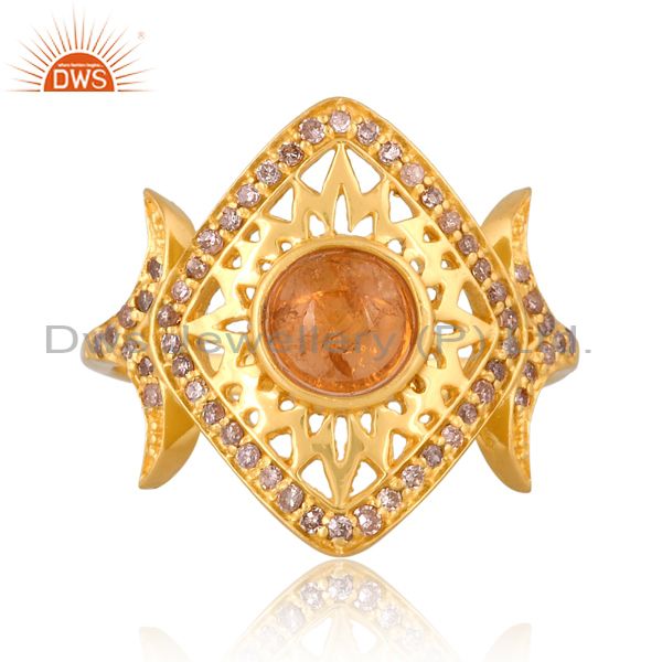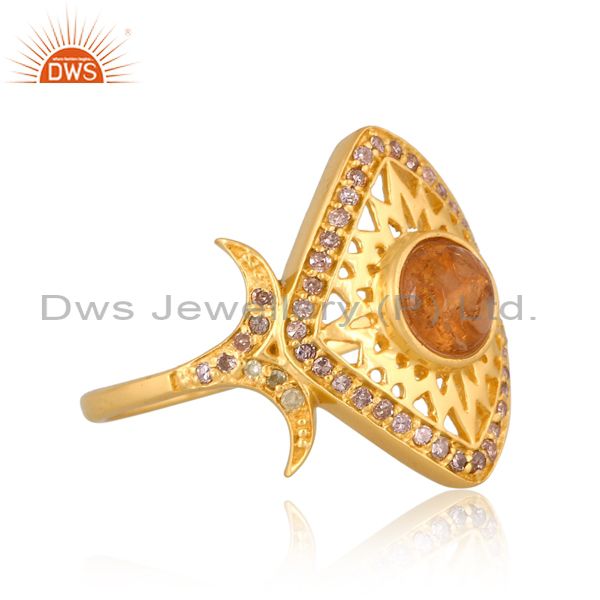 Diamond And Multi Tourmaline Set Gold On Silver Ethnic Ring