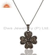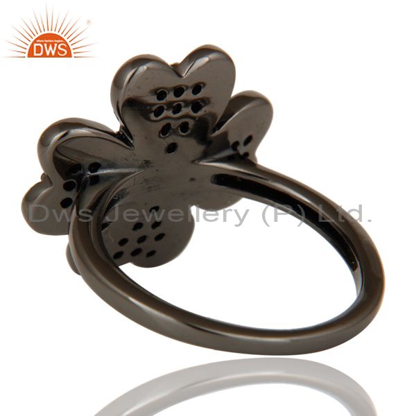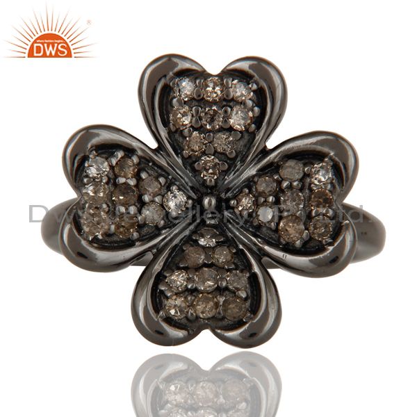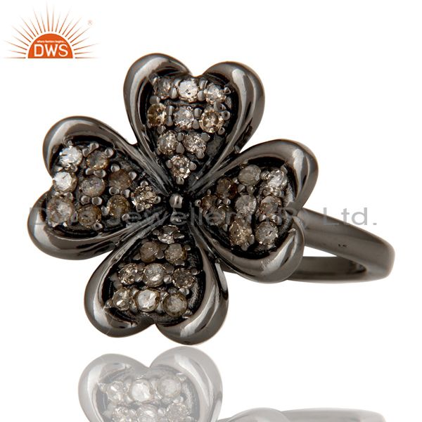 Diamond and Oxidized Sterling Silver Flower Design Ring