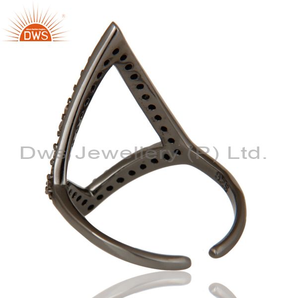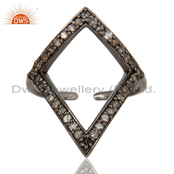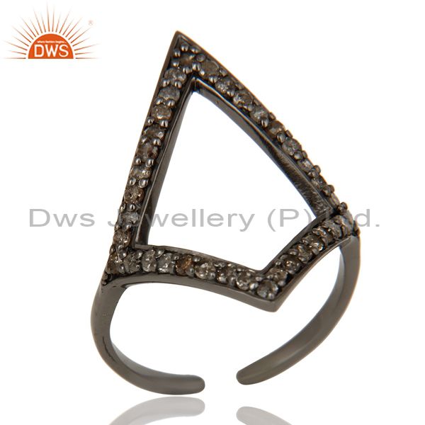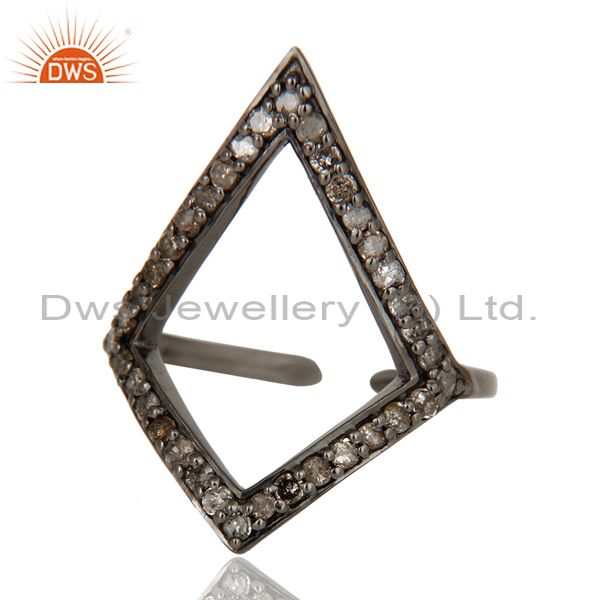 Diamond and Oxidized Sterling Silver Tringle Shape Midi Ring