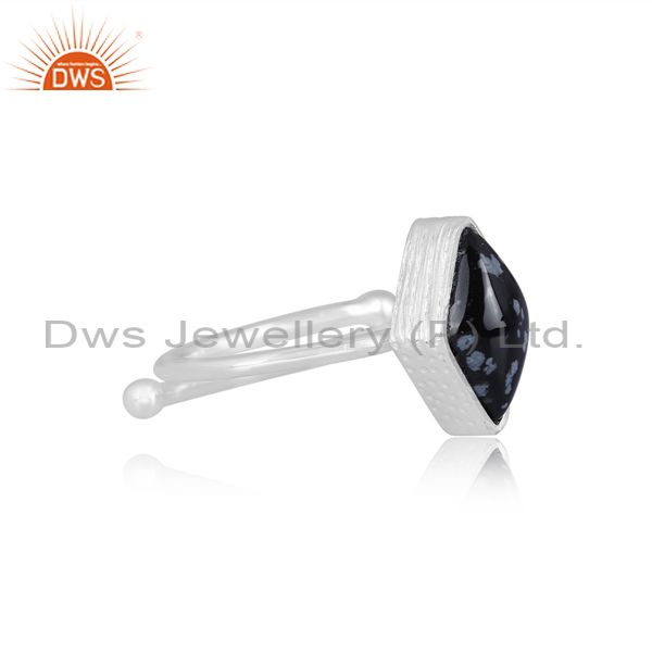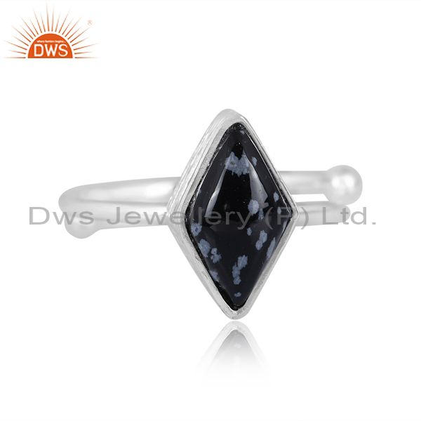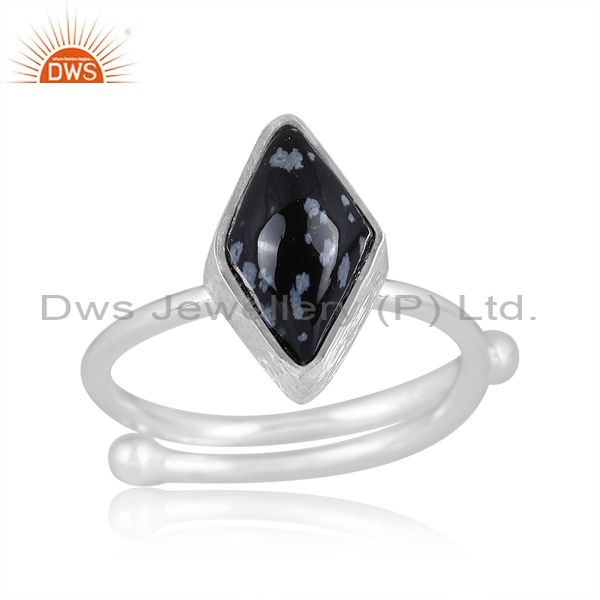 Diamond Cut Snowflake Obsidian Set Fine Silver Fancy Ring
