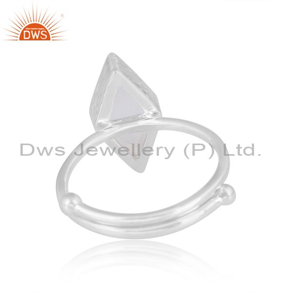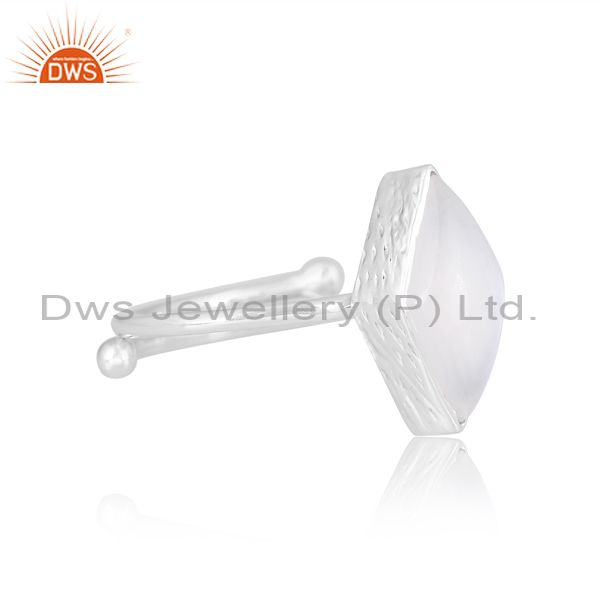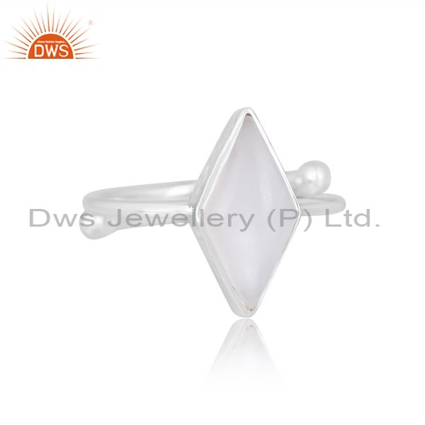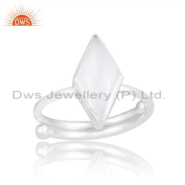 Diamond Cut White Moon Stone Set Fine 925 Silver Fancy Ring