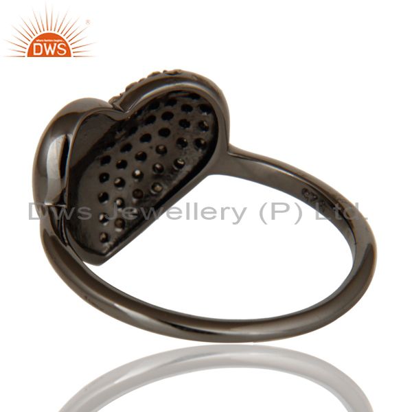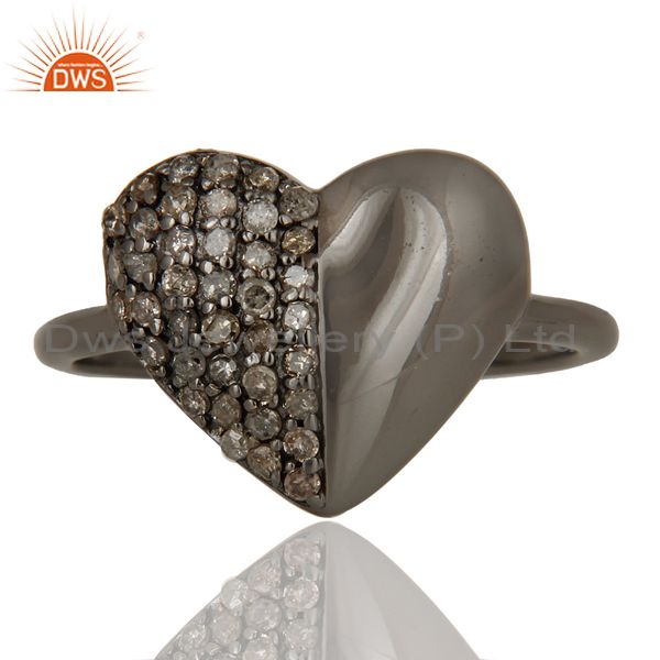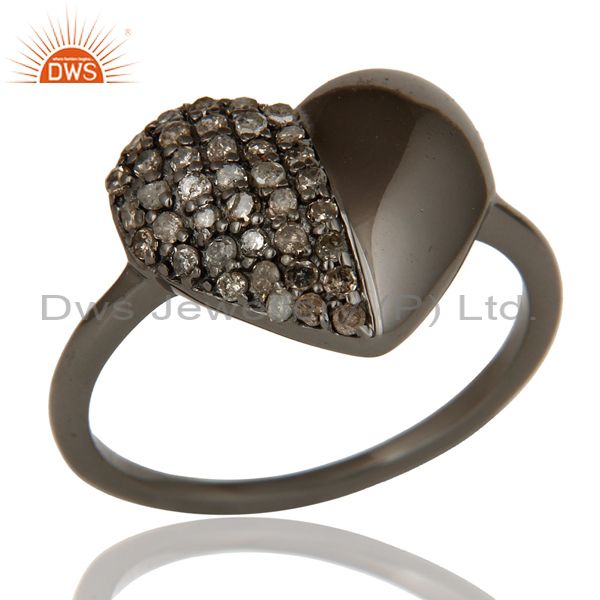 Diamond Heart Shape Black Oxidized Sterling Silver Love Ring