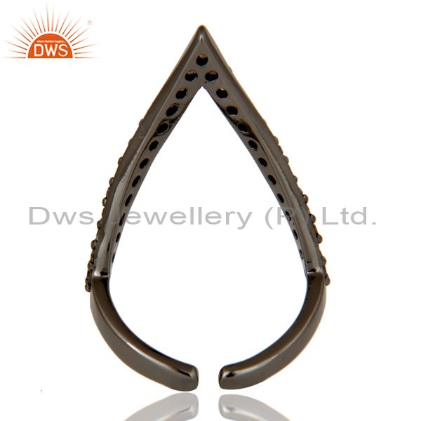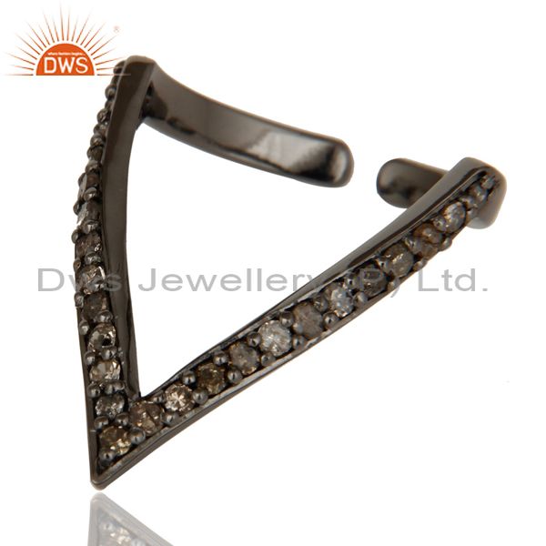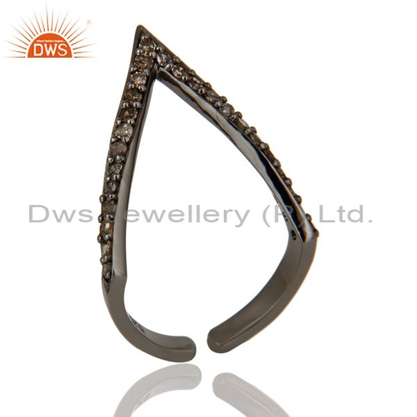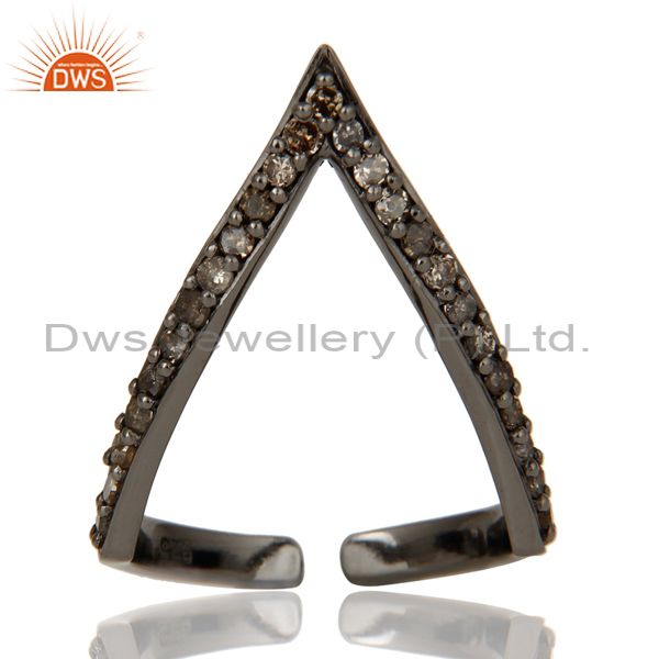 Diamond Round Cut Black Oxidized Sterling Silver Tringle Shape Midi Ring