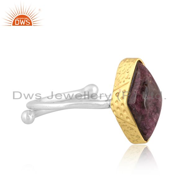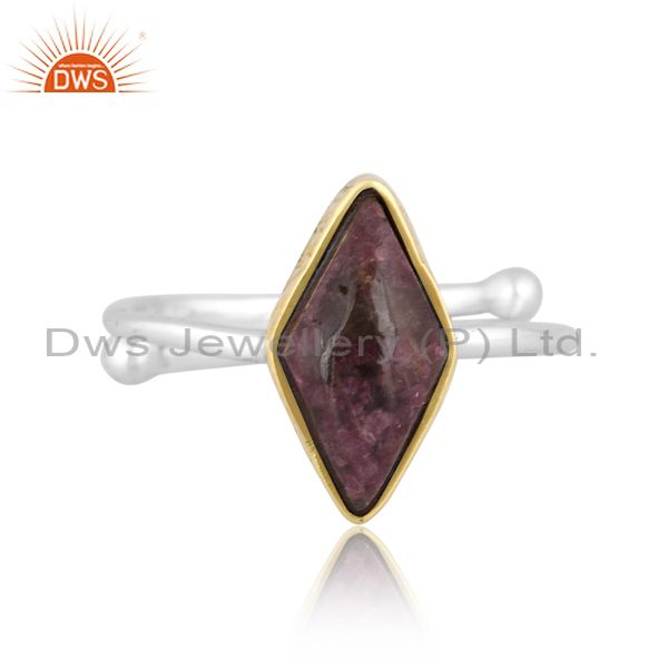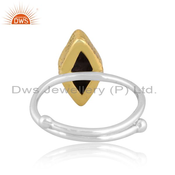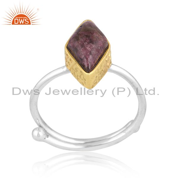 Diamond Tourmaline In Quartz Set Gold On Fine Silver Ring