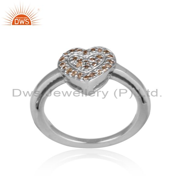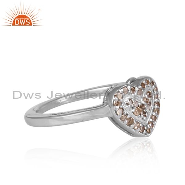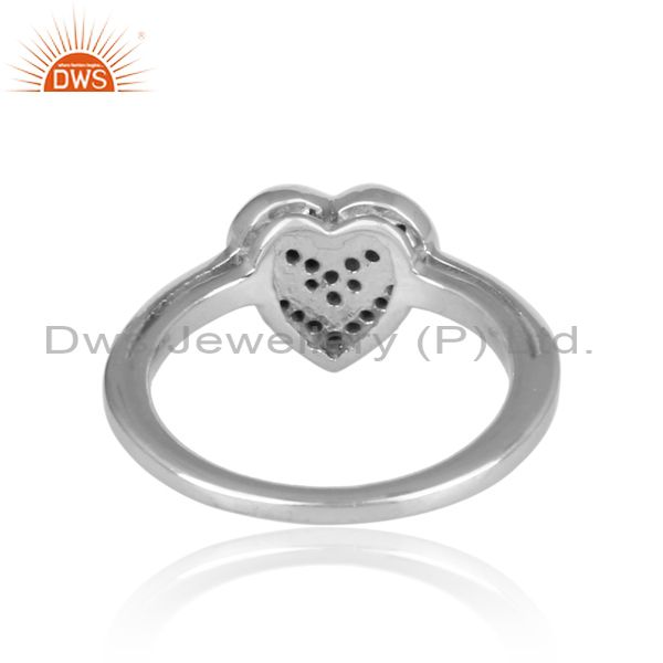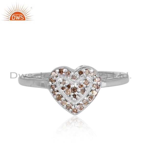 Diamonds Set White Rhodium Sterling Silver Heart Shaped Ring