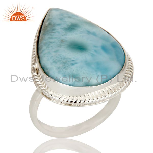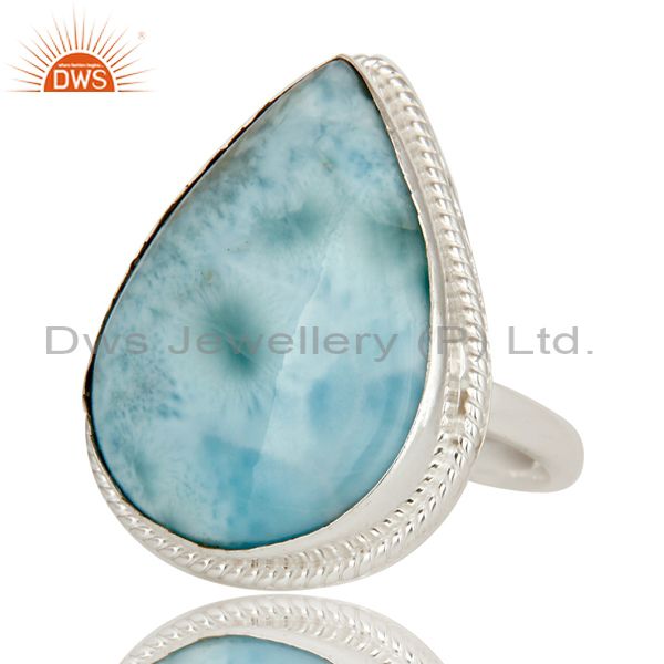 Domenican Republican Larimar Bezel Set Solid Sterling Silver Ring Handmade Ring