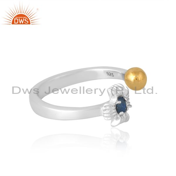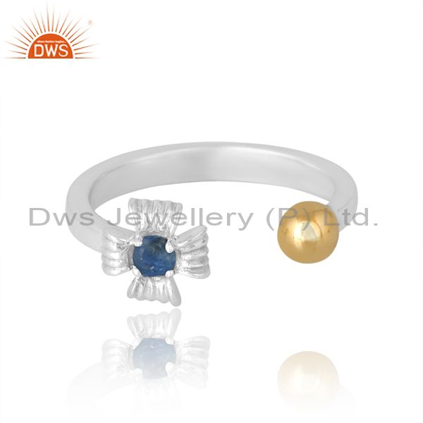 Dot And Flower Valentine Silver Ring With Kyanite Round Cut