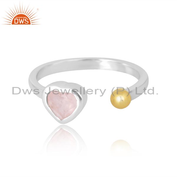 Dot And Heart Women Ring For Valentine With Rose Quartz