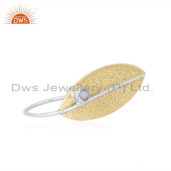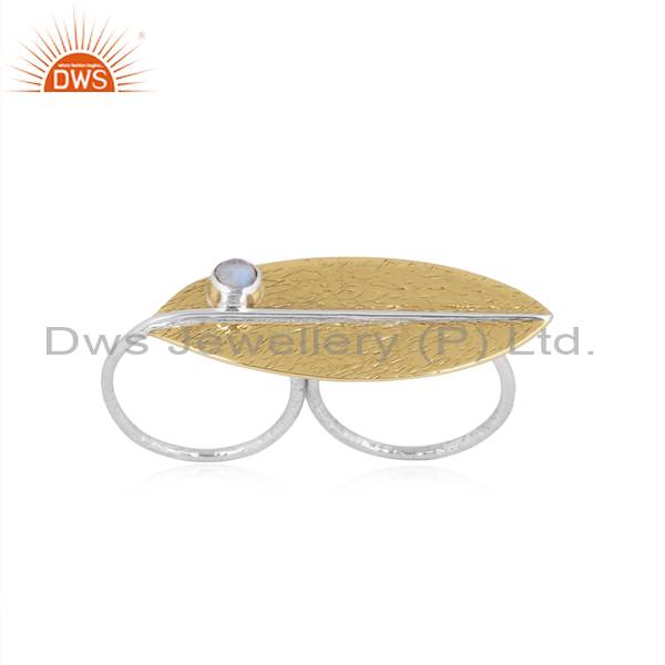 Double Finger Rainbow Moonstone Ring In Sterling Silver