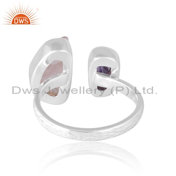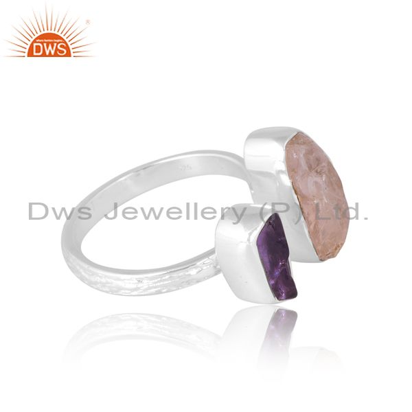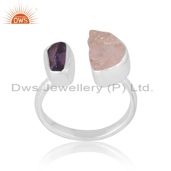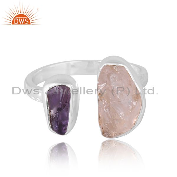 Double-Side Adjustable Ring With Quartz And Amethyst Women