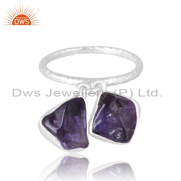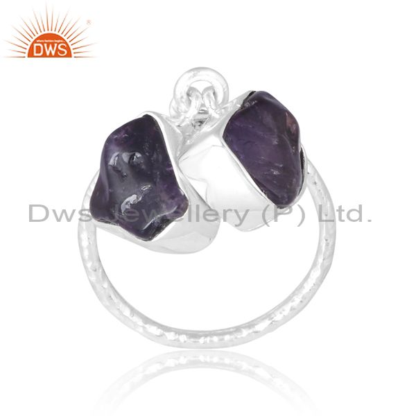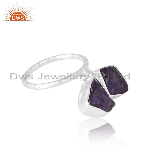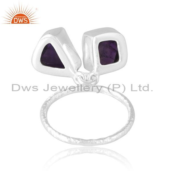 Double-Side Amethyst Stone Edge Ring In Silver Women S Fancy