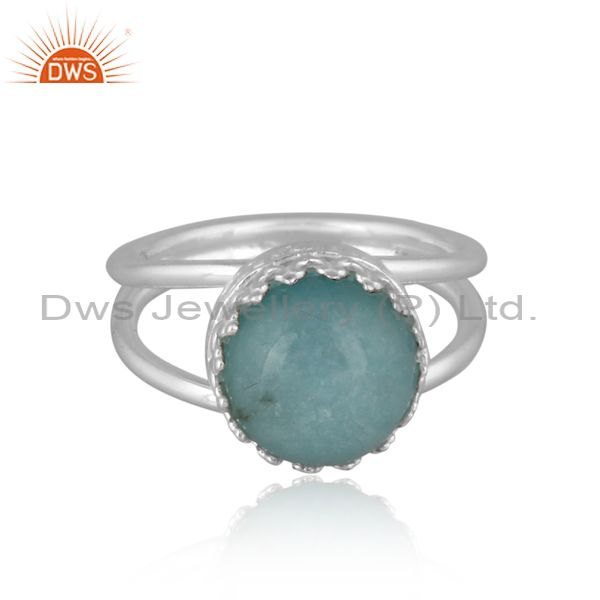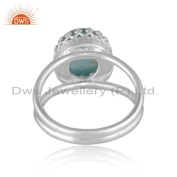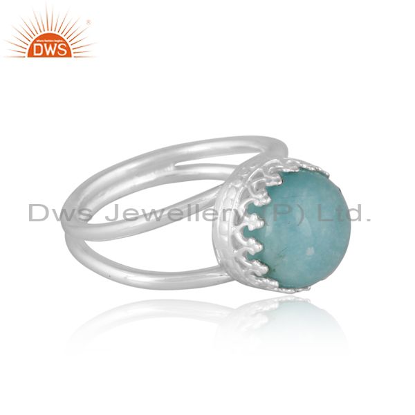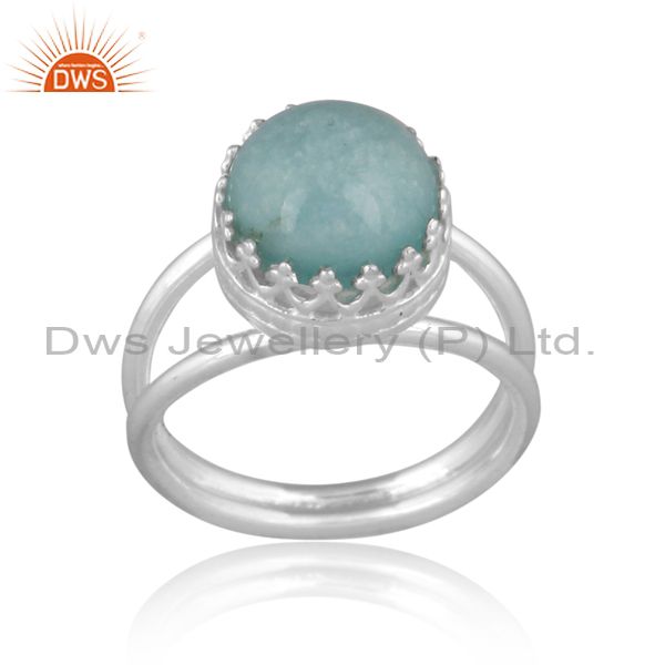 Doublet Amazonite Crystal Set Fine 925 Silver Crown Ring