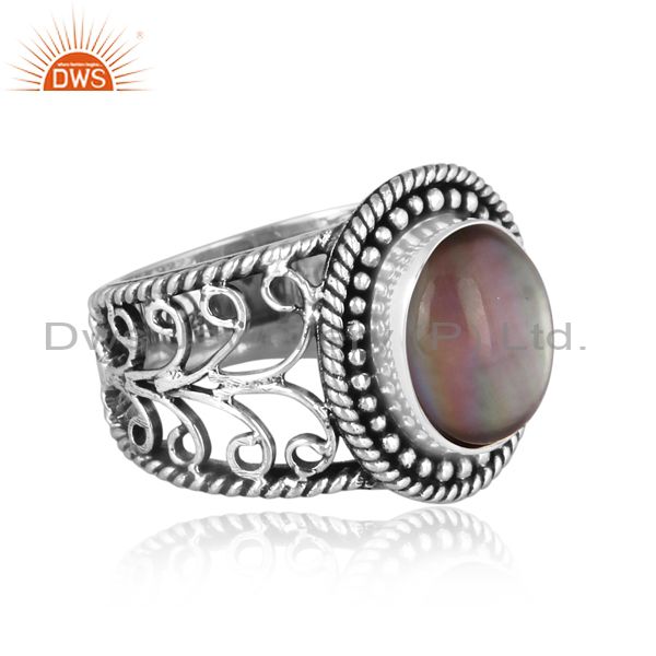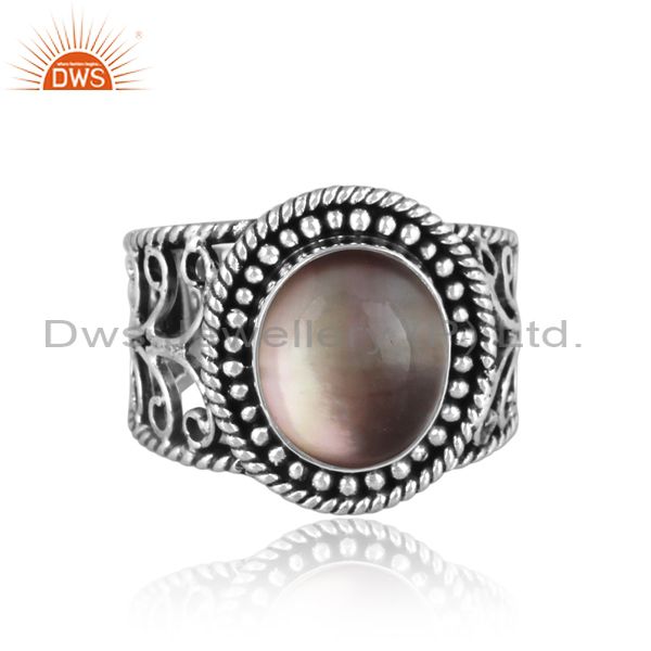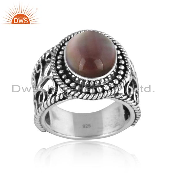 Doublet Apache Gold Crystal Oxidized Silver Ethnic Band Ring