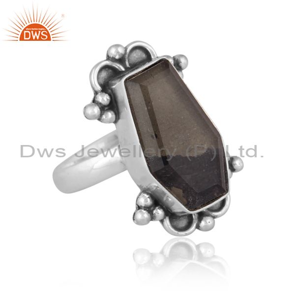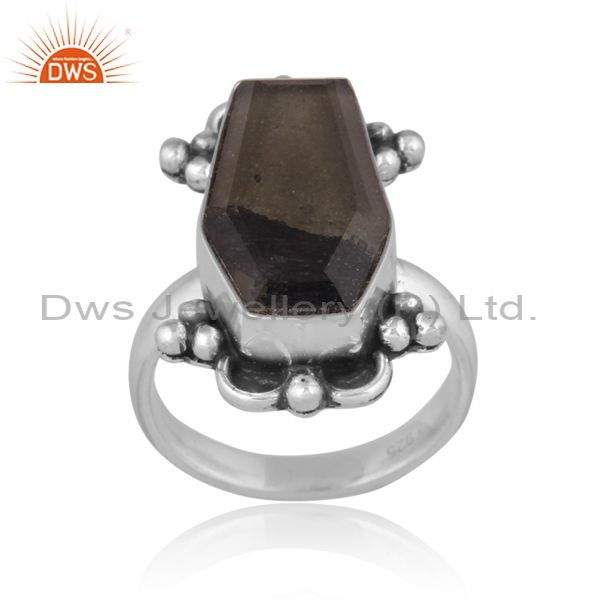Doublet Apache Gold Crystal Set Oxidized Silver Ethnic Ring