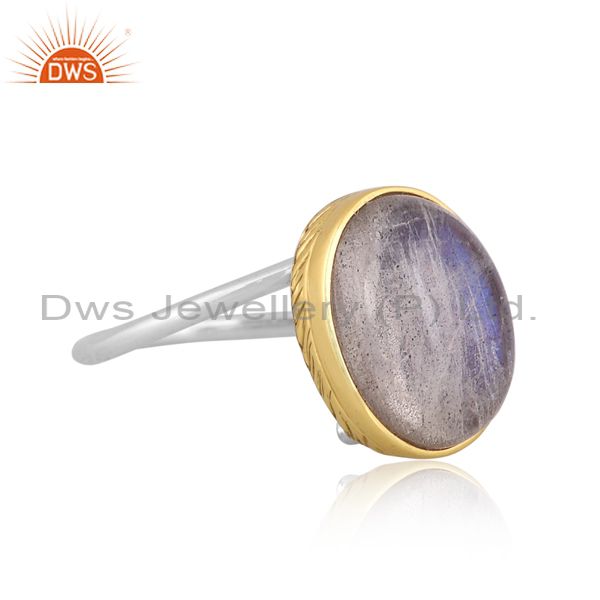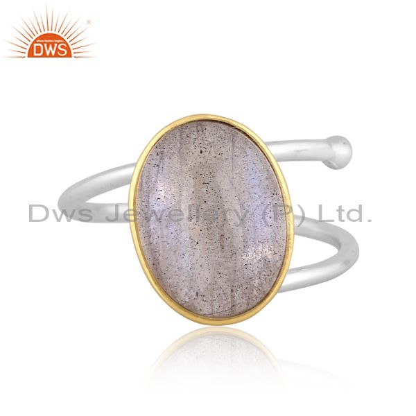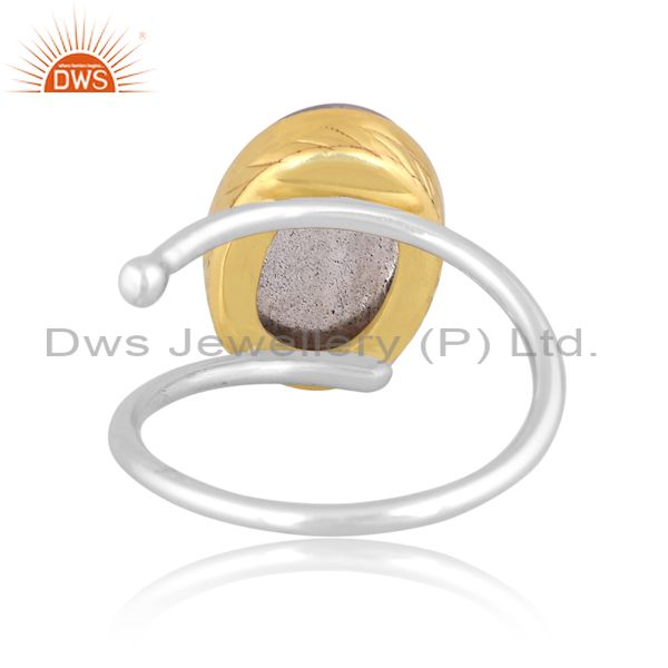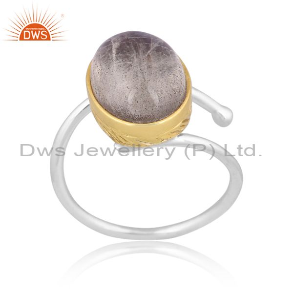 Doublet Gray Mop Crystal Set Gold On Fine 925 Silver Ring
