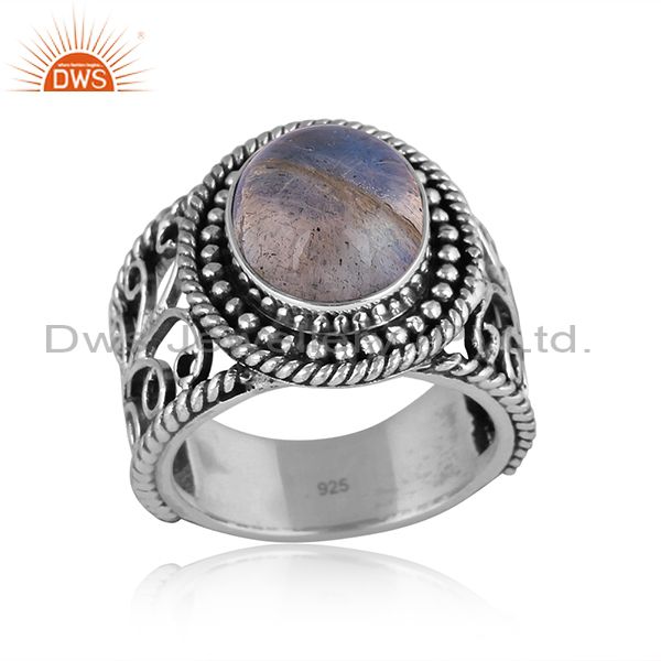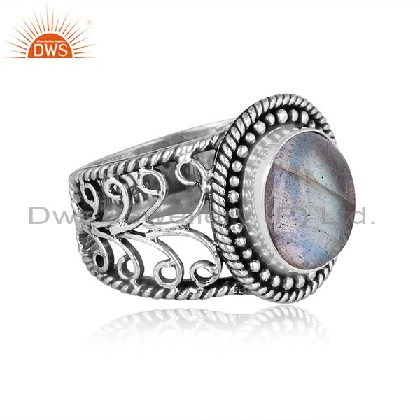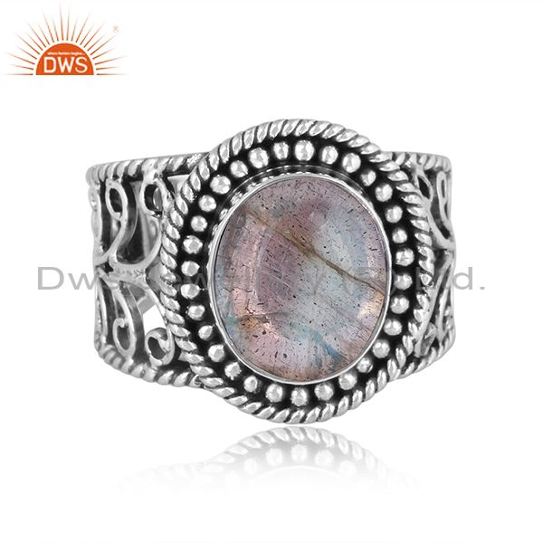 Doublet Labradorite Crystal Oxide Silver Ethnic Band Ring