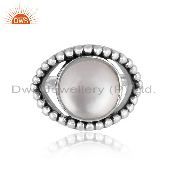 Doublet Mother Of Pearl Crystal Oxide Silver Designer Ring