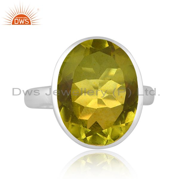 Doublet Peridot Quartz Set Fine Sterling Silver Design Ring