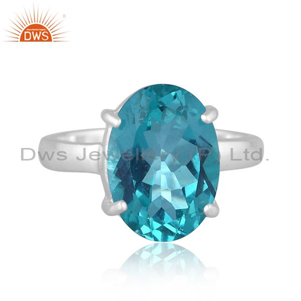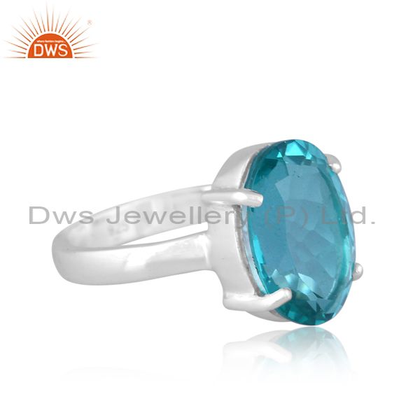 Doublet Santamaria Aquamarine Quartz Oval Fine Silver Ring
