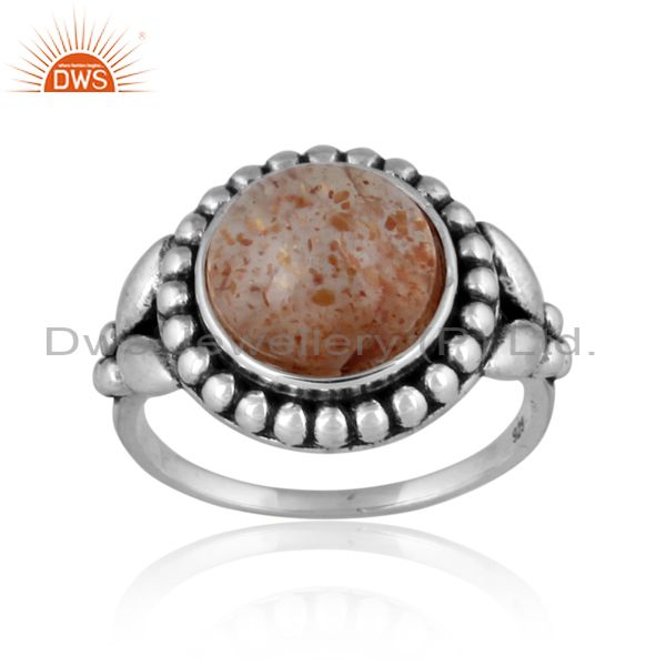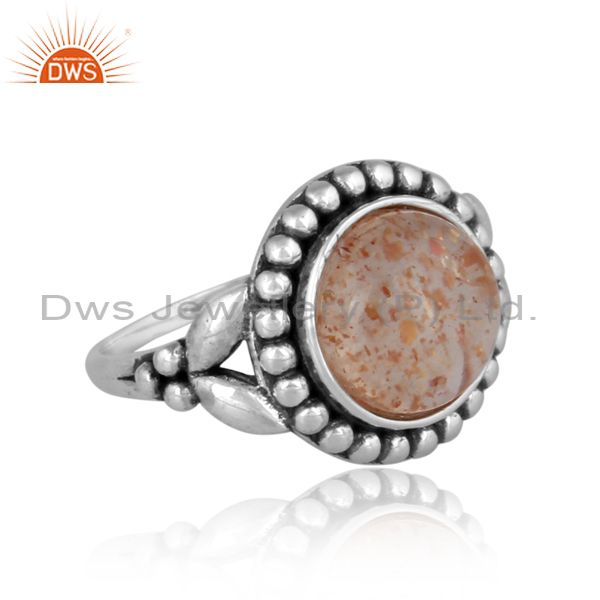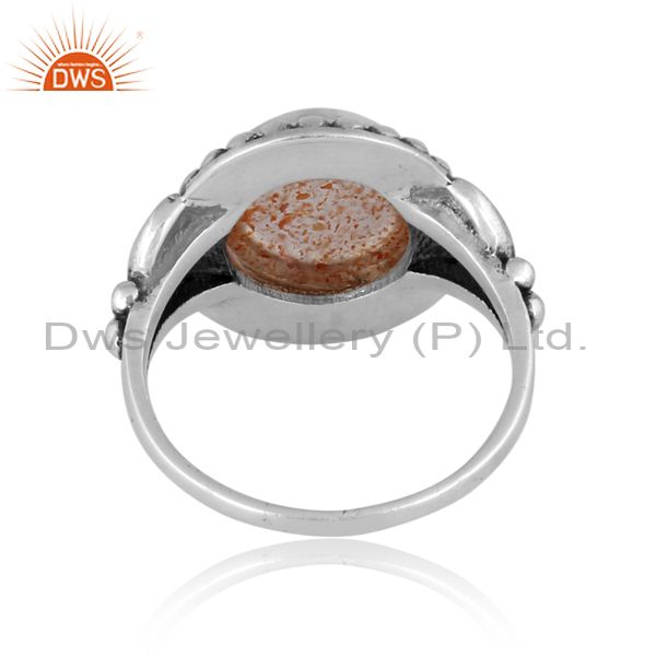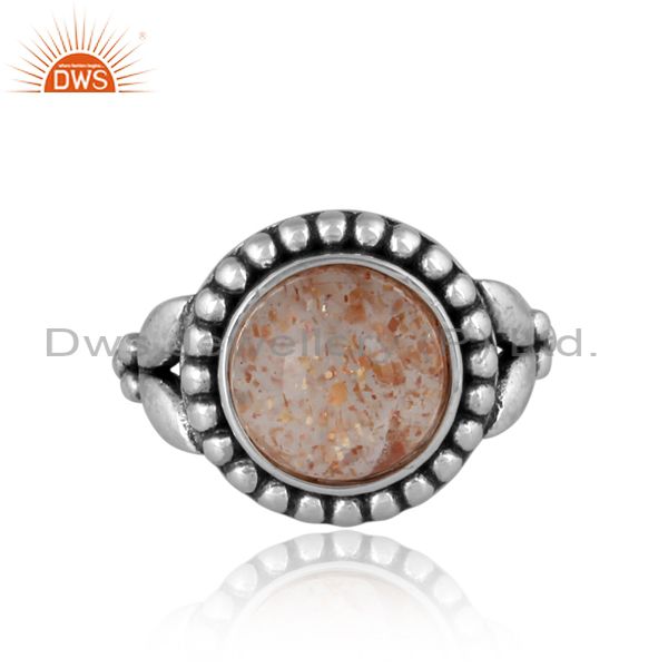 Doublet Sunstone Crystal Set Oxidized 925 Silver Fancy Ring