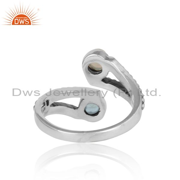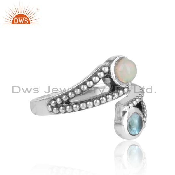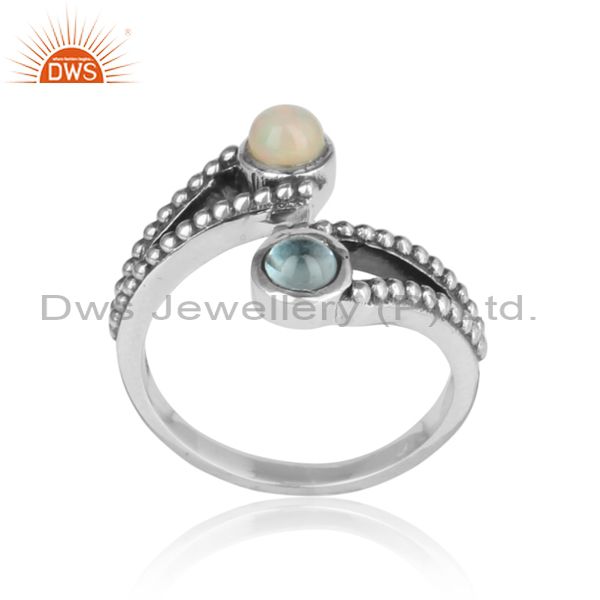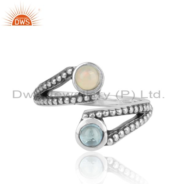 Dual Ethiopian Opal & Blue Topaz Cabushion Silver Ring