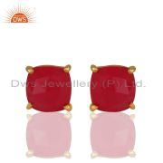 Dyed Pink Chalcedony Gemstone 18K Gold Plated Sterling Silver Ring