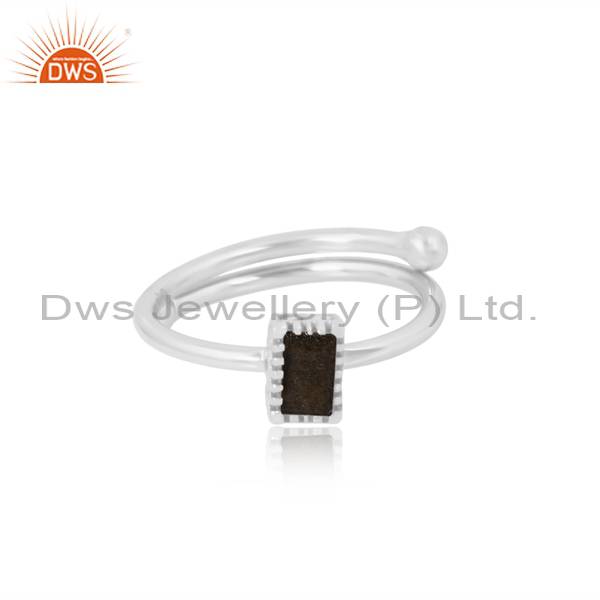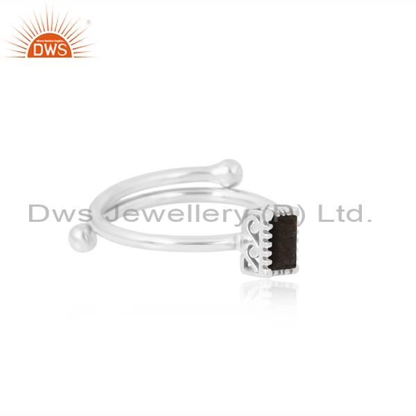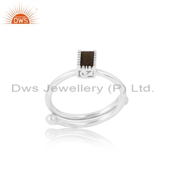 Elegant Adjustable Beguette Cut Gold Sheen Obsidian Ring