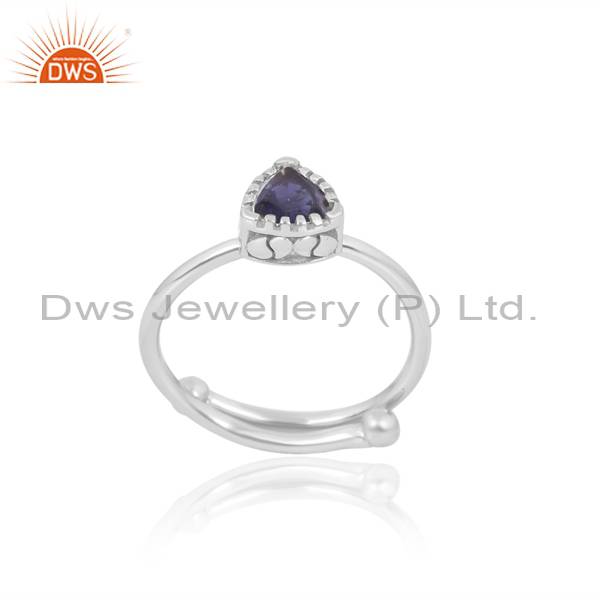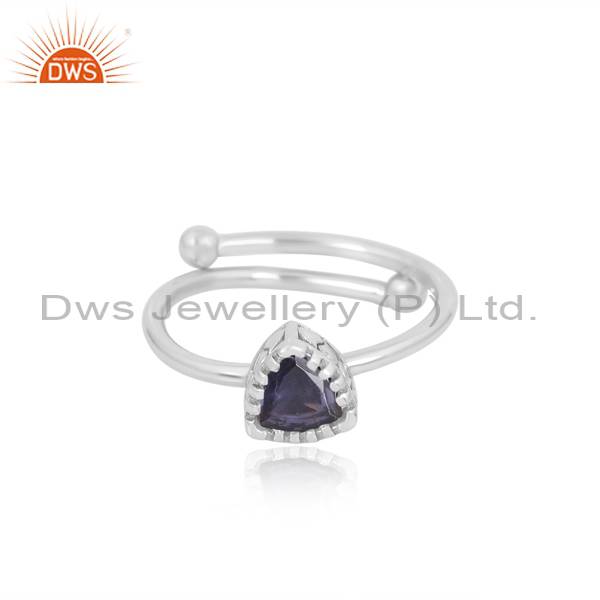 Elegant And Eye-Catching Adjustable Trillion Cut Iolite Ring