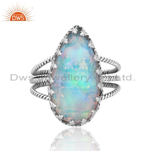 Elegant And Eye-Catching Oval Cut Aurora Opal White Ring