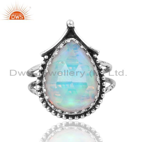 Elegant And Eye-Catching Pear Cut Aurora Opal White Ring