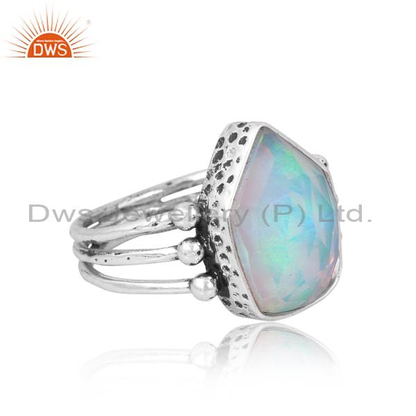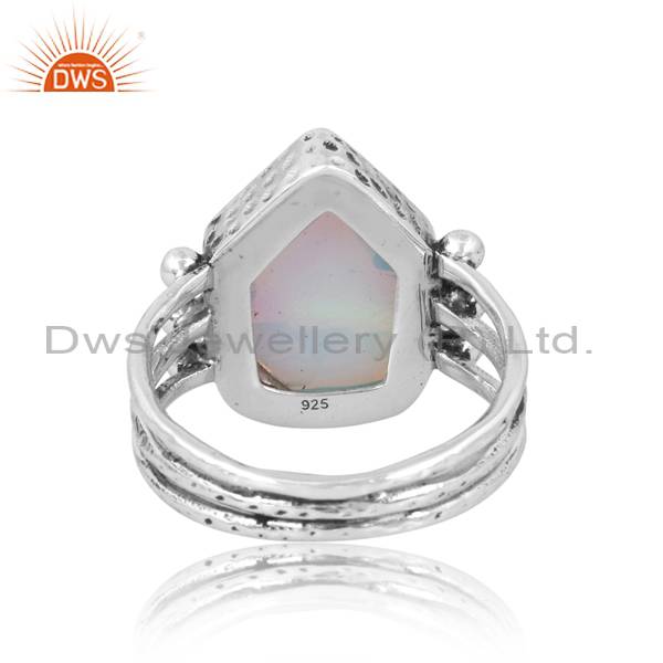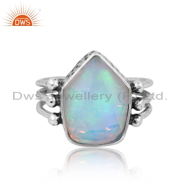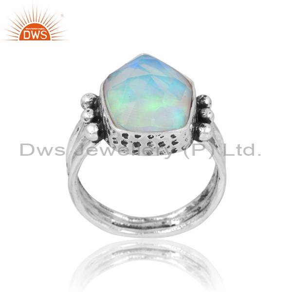 Elegant And Eye-Catching Pentagon Cut Aurora Opal White Ring