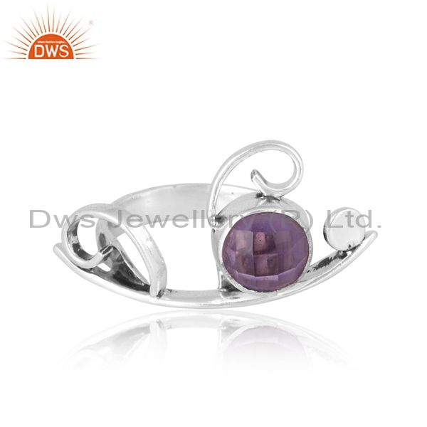 Elegant And Grace Amethyst Checker Round Ring For Women