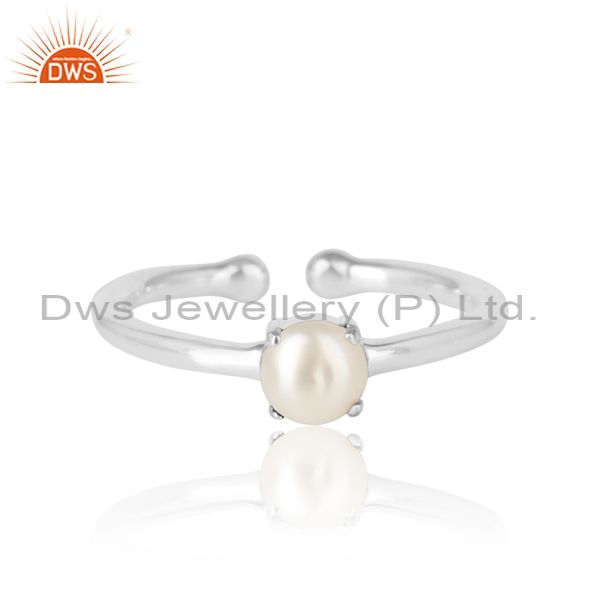 Elegant Dainty Solitaitre Ring In Silver 925 with Pearl