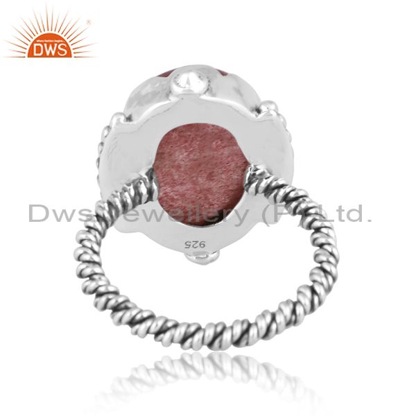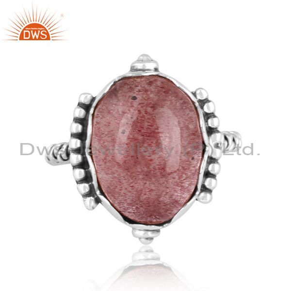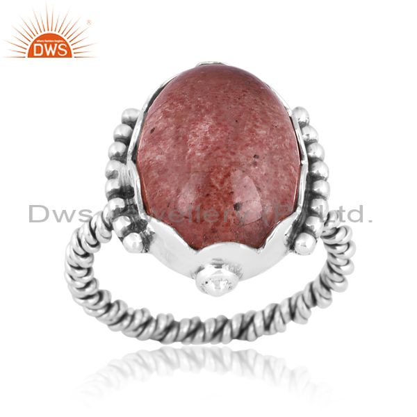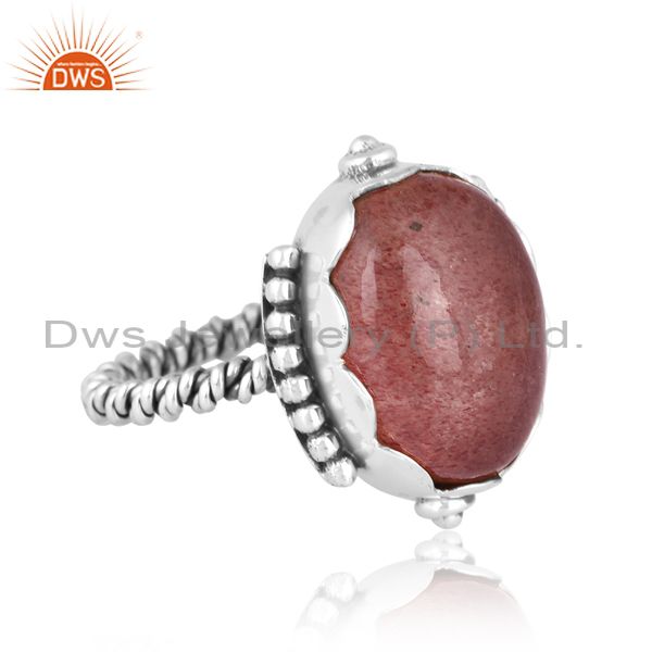 Elegant Sterling Silver Ring Strawberry Quartz Oval Stone