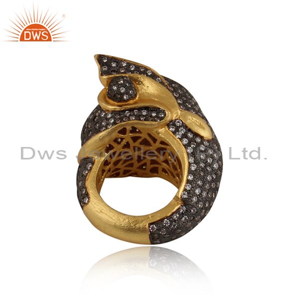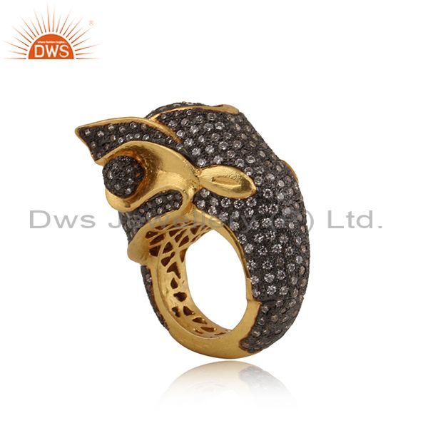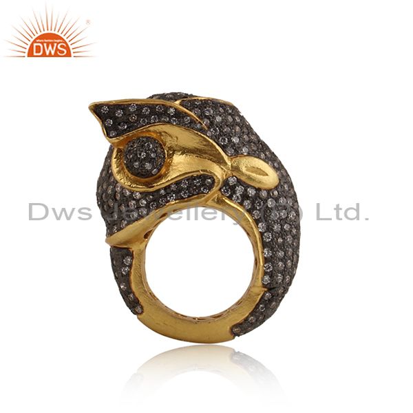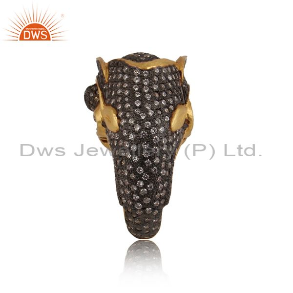 Elephant Shaped Rhodium & Gold Plated Silver Antique CZ Ring