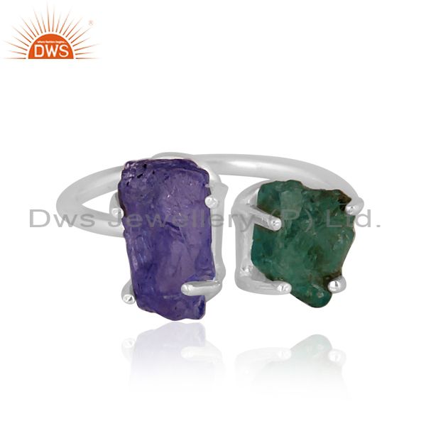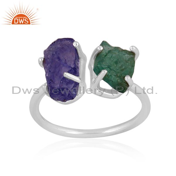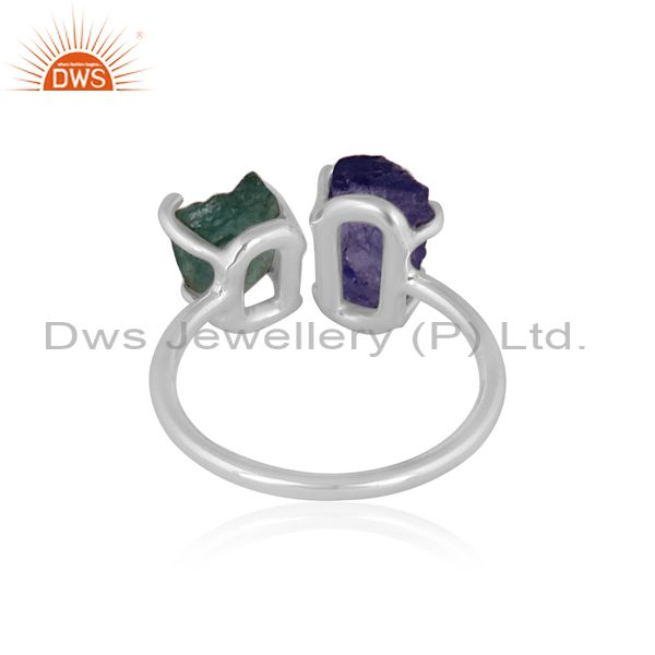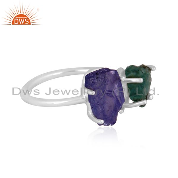 Emerald And Tanzanite Set Fine Silver Multi Stone Fancy Ring