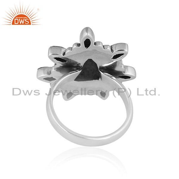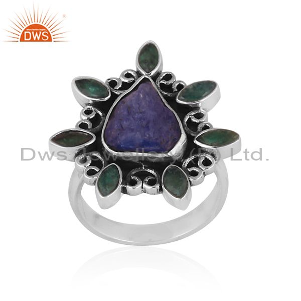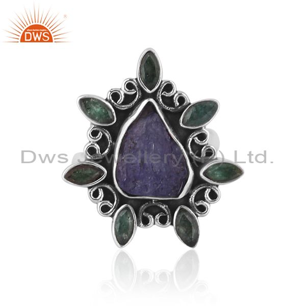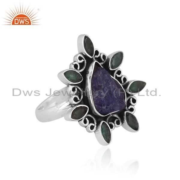 Emerald And Tanzanite Set Oxide Silver Abstract Fancy Ring
