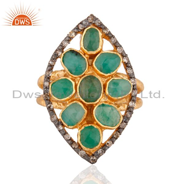 Emerald Gemstone 925 Sterling Silver Natural Diamond Ring With 24K Gold Plated