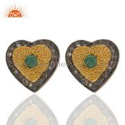 Emerald Gemstone Pave Diamond 18K Gold Over Sterling Silver Heart Ring