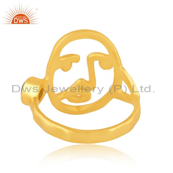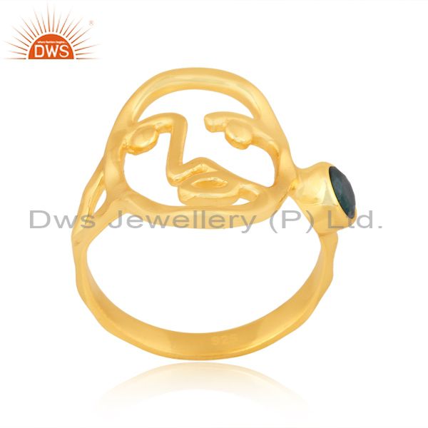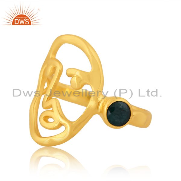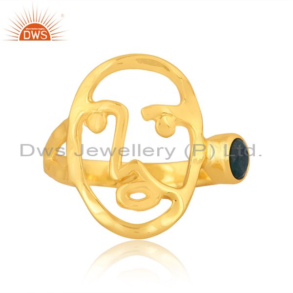 Emerald Set Gold On Silver Face Jewelry Gold On Silver Ring