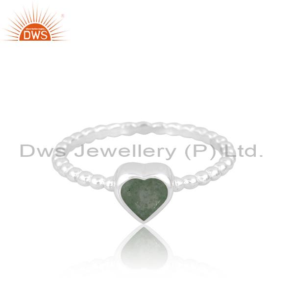Enchanting Heart Ring: Green Strawberry Quartz For Ladies