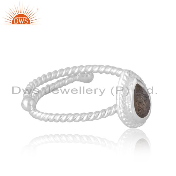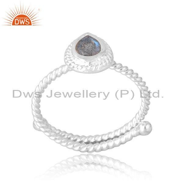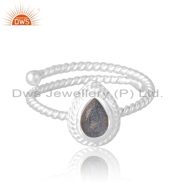 Engagement Silver Band In Pear Cut Labradorite Unique Women