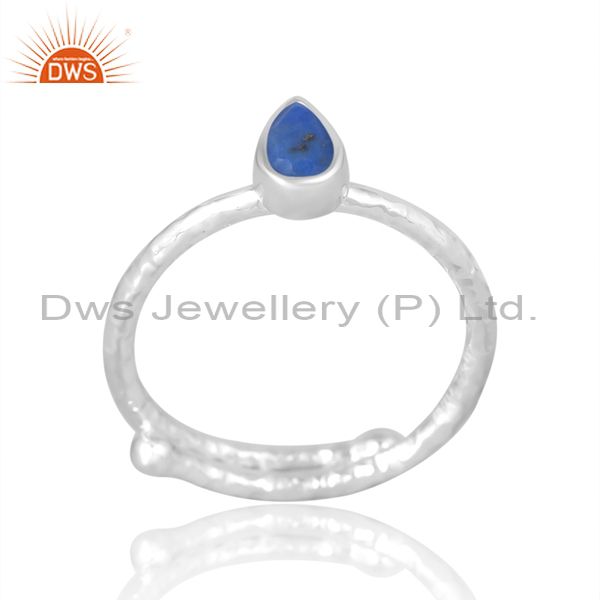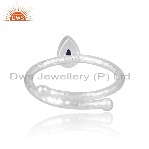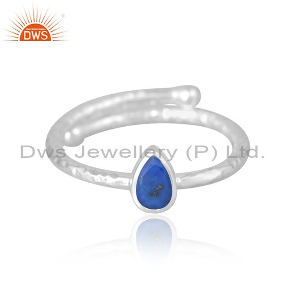 Engagement Silver Band In Pear Cut Lapis For Unique Women