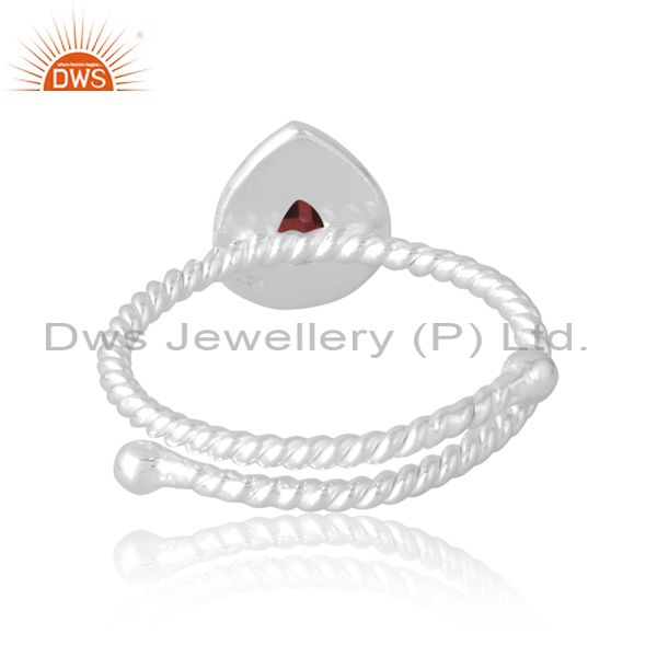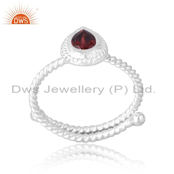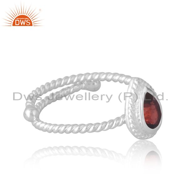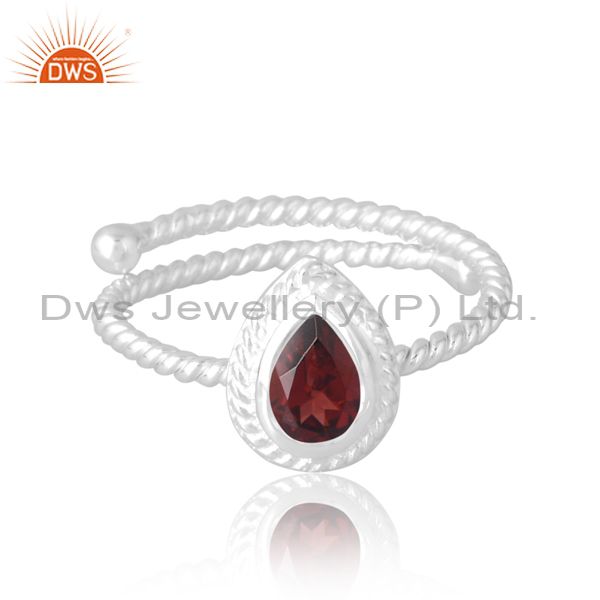 Engagement Silver Band In Pear Garnet Cut For Unique Women