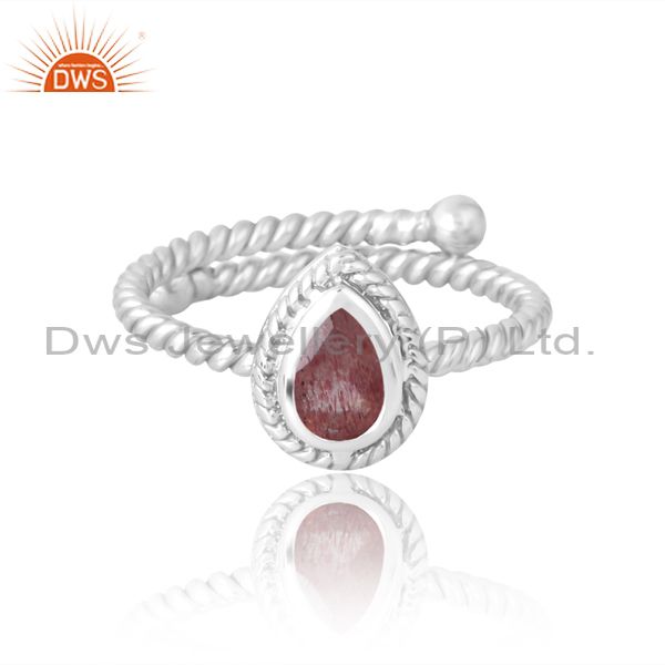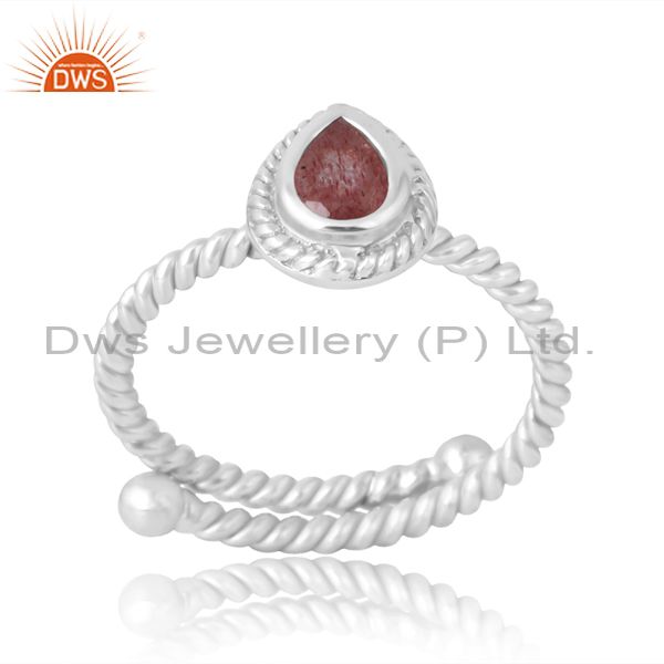 Engagement Silver Band In Pear Pink Strawberry Unique Women