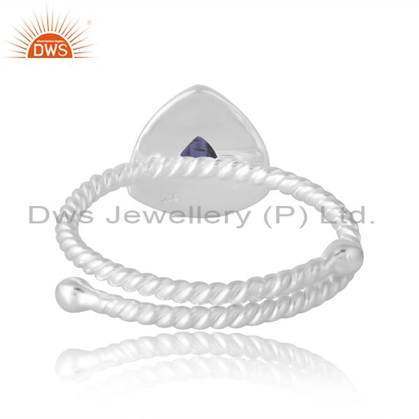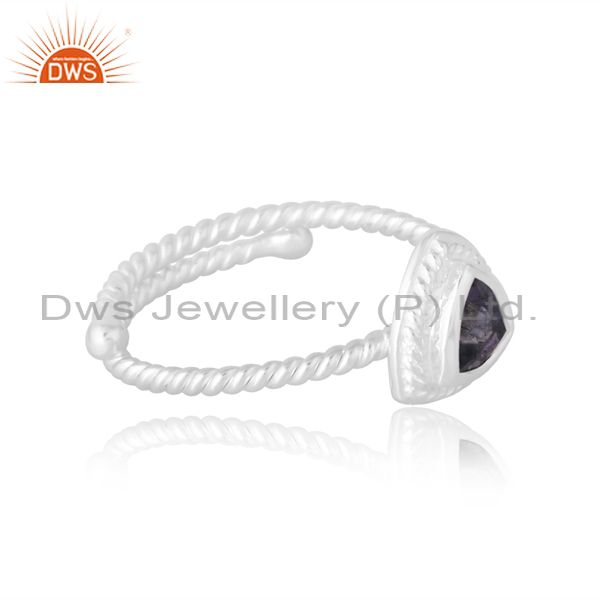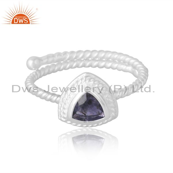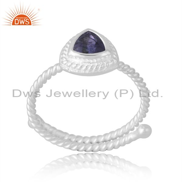 Engagement Silver Band In Trillion Cut Iolite Unique Women