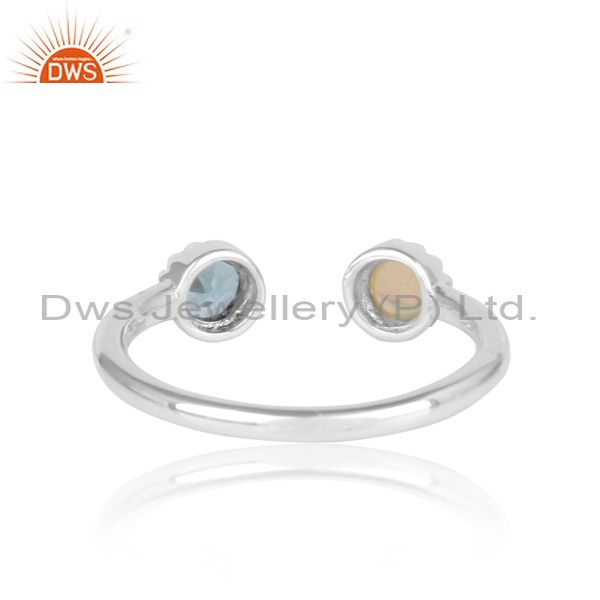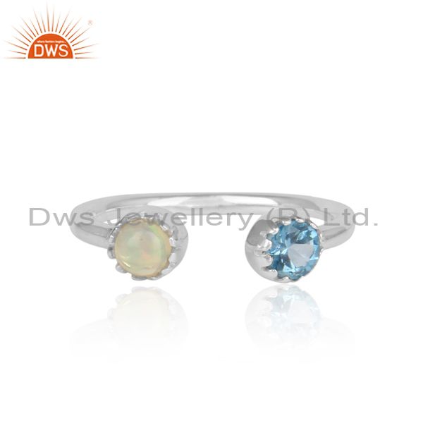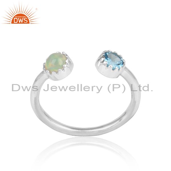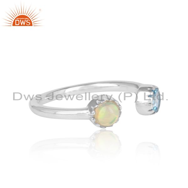 Ethiopian & Blue topaz Facing 925 Oxidized Silver Ring