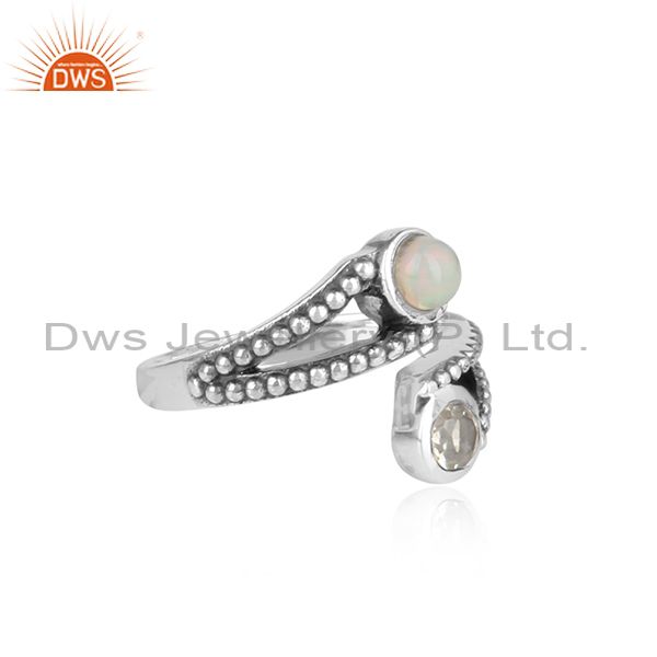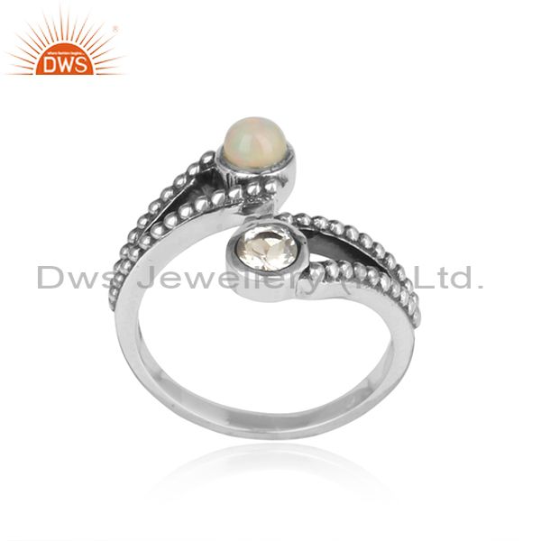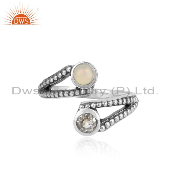 Ethiopian Opal & Crystal Quartz Sterling Silver Ring