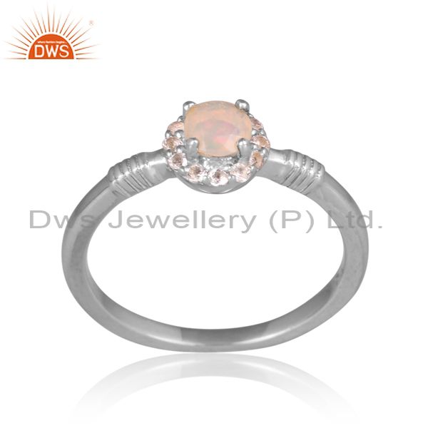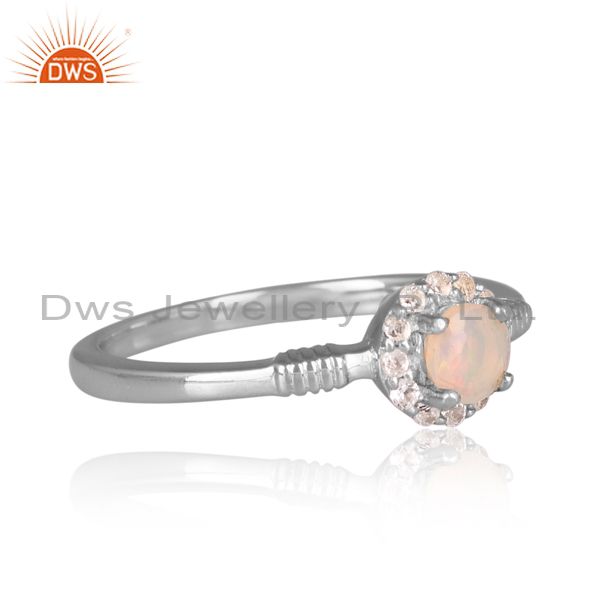 Ethiopian Opal & White Topaz On Sterling Silver Ring Gold